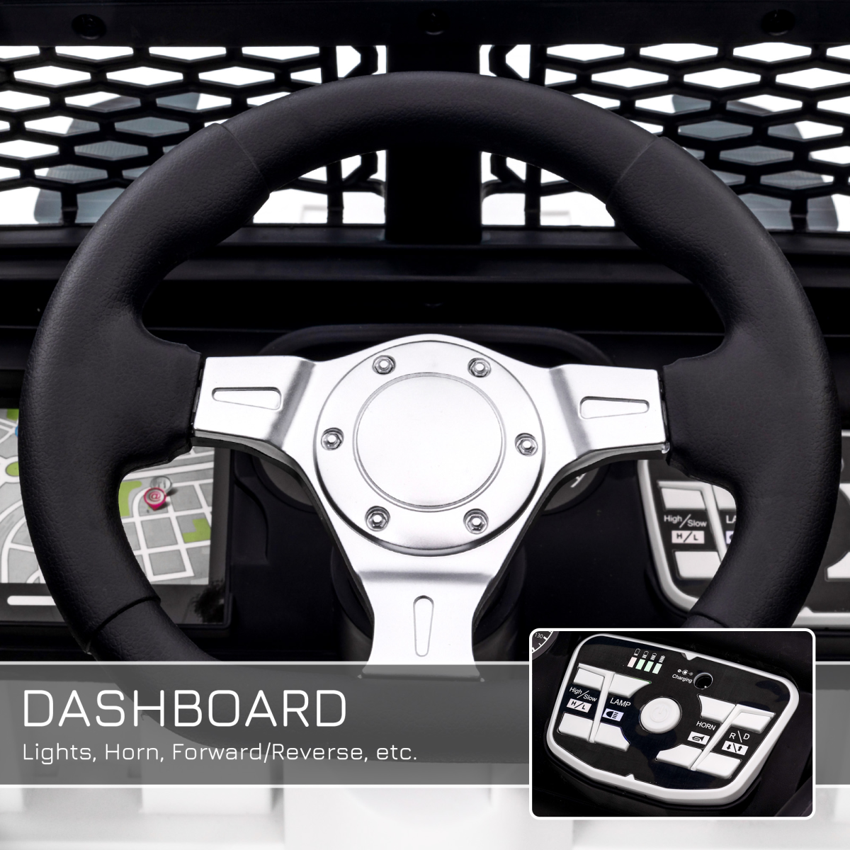 Turn playtime into an adventure with this Kids Off-Road Electric Ride-On Truck. Built to look and feel like a real SUV, this rugged ride-on features LED headlights, dashboard gauges, and a realistic steering wheel for an authentic driving experience.