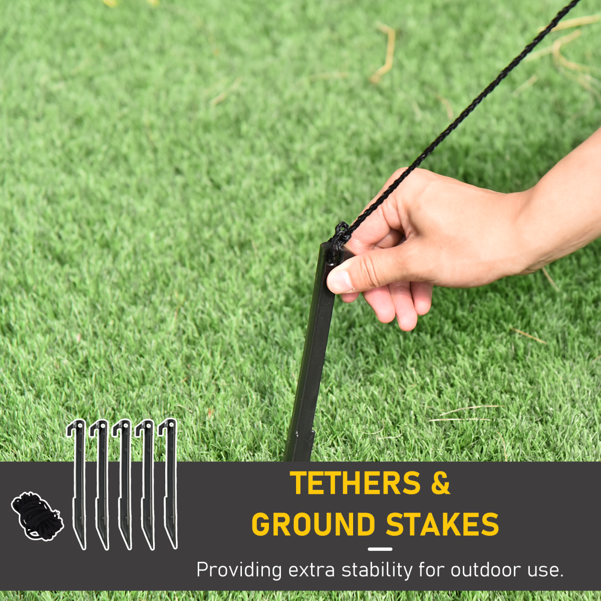 Made from durable, weather-resistant polyester cloth (IP44 rated) and certified to CE and EMC standards, it’s safe for outdoor use throughout the season. To keep it secure, it comes with an internal fan, 3 tether ropes, 2 sandbags, and 3 ground stakes.