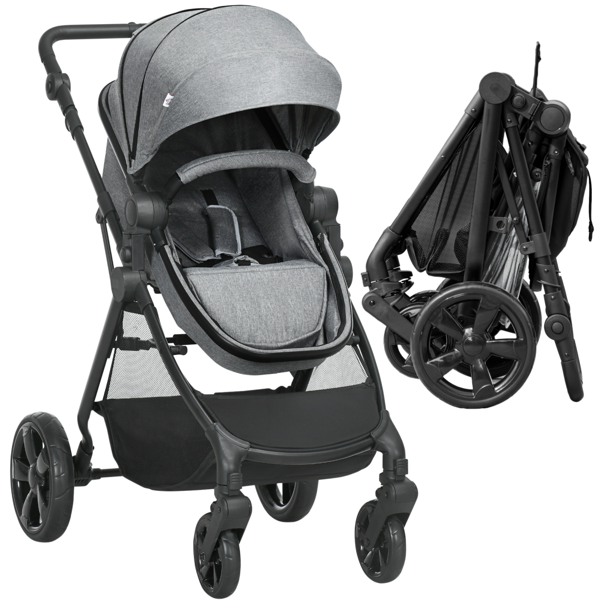 Foldable Baby Pushchair w/ Fully Reclining Backrest From Birth to 3 Years- Gey