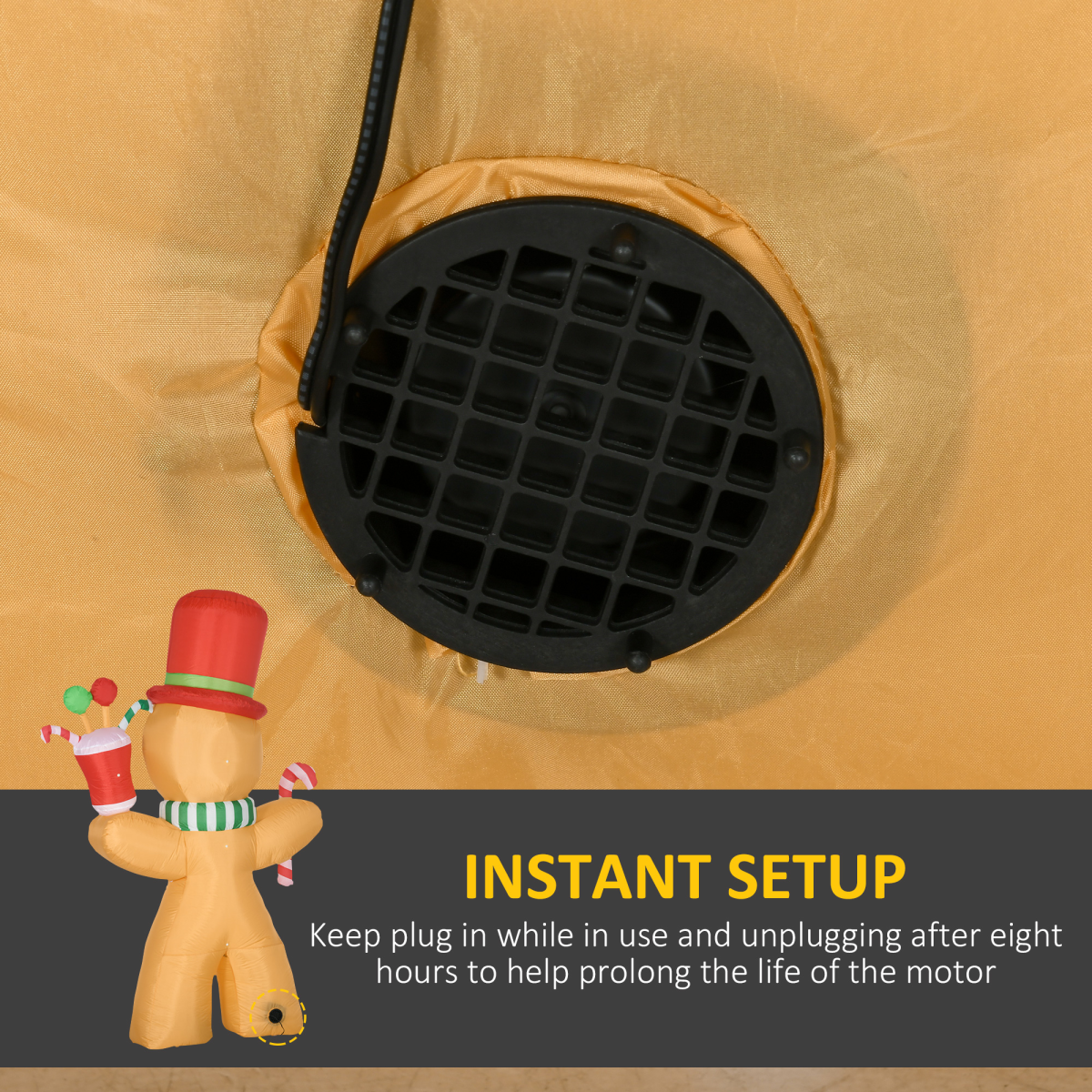 Spread holiday cheer with this Inflatable Gingerbread Man—a happy festive figure holding a candy cane and a cup, perfect for bringing joy to your Christmas display.