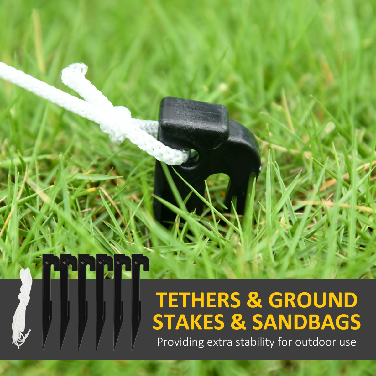 This inflatable sets up easily—simply plug in the built-in fan to inflate, and turn off to deflate quickly for convenient storage. To keep it secure, the set includes six ground stakes, two guy ropes, and four sandbags, ensuring stability even in breezy conditions.