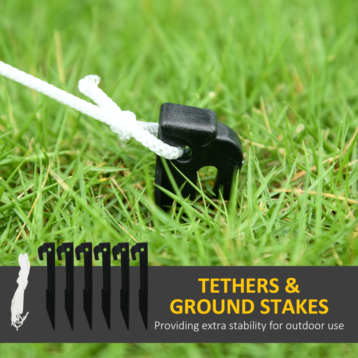 Setup couldn’t be easier—simply plug it into the mains to self-inflate, and turn it off to deflate quickly for convenient storage. To keep it steady, it comes with six ground stakes and two guy ropes for secure anchoring.