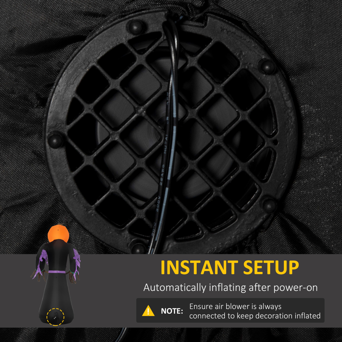 Bring spooky fun to your Halloween display with this towering 2.1m inflatable Pumpkin Man from HOMCOM. Featuring a terrifying Grim Reaper body with a pumpkin head, it instantly creates a haunted atmosphere perfect for parties, trick-or-treating, or outdoor displays.