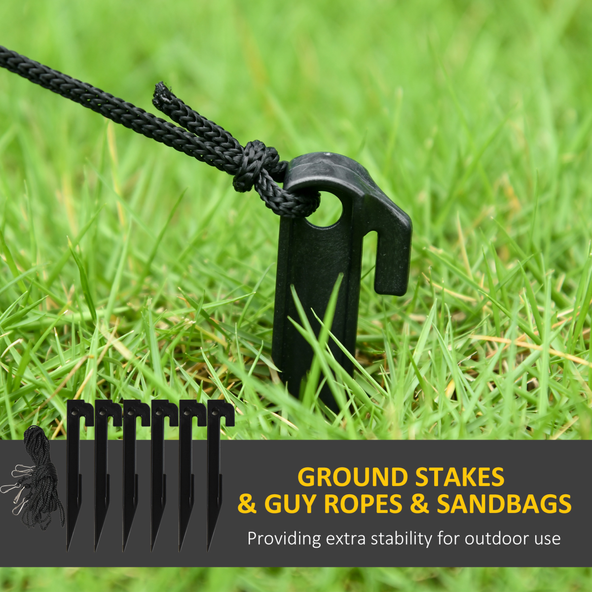 Setup is quick and easy – simply plug in the built-in fan to inflate and unplug to deflate. For added stability, it includes six ground stakes, two guy ropes, and two sandbags to keep it secure in place.⚠️ Note: The blower must remain plugged in to keep the inflatable full. Do not leave plugged in for more than eight hours or use in heavy rain, snow, or strong wind.