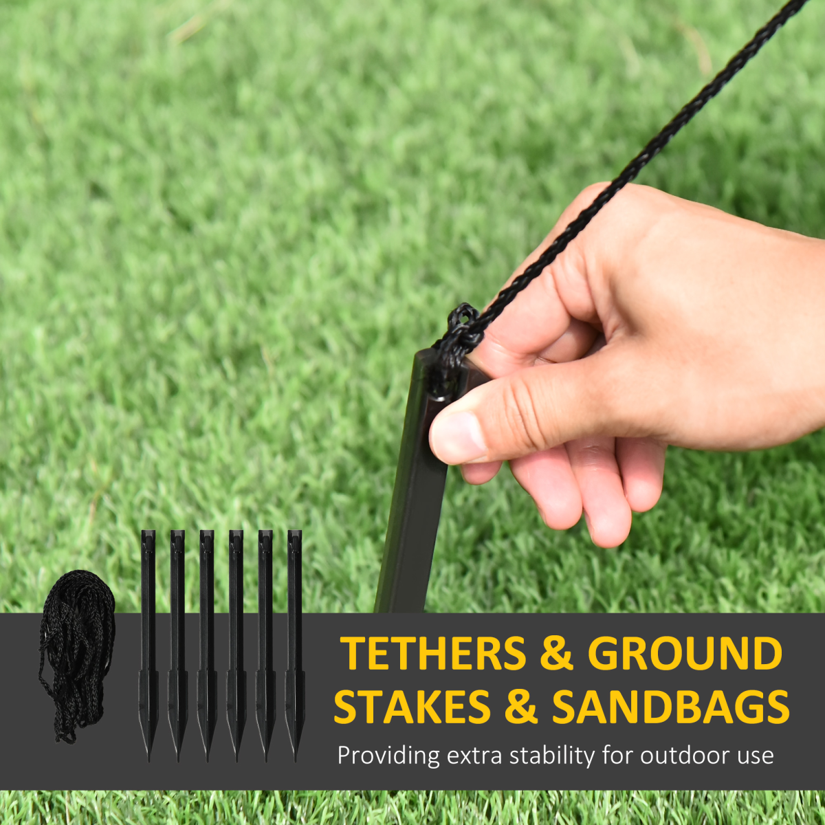 It’s quick and easy to set up—simply plug it in to inflate and unplug to deflate for hassle-free storage. To keep it secure, the set includes six ground stakes, three guy ropes, and two sandbags (200g each), ensuring it stays stable even in breezy conditions.